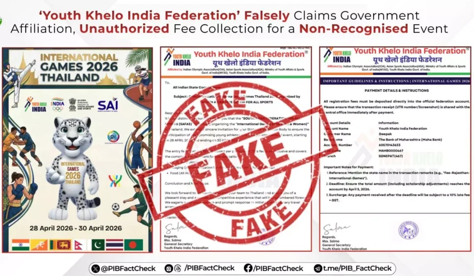 According to the official communication from the PIB’s fact-checking unit, the Youth Khelo India Federation is not affiliated with, recognized by, or in any way associated with the Government of India, the official Khelo India program, the Ministry of Youth Affairs and Sports, or the Indian Olympic Association (IOA). The clarification was prompted by reports of the organization soliciting payments from athletes under the guise of an entry fee for an event titled "International Games 2026," purportedly to be held in Thailand from April 28 to April 30, 2026.