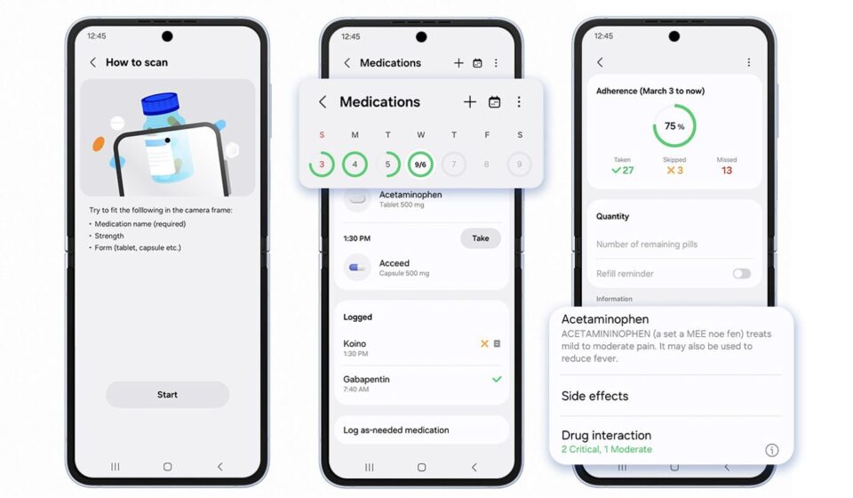 - Centralized Medication Management: Users can track their medications, set reminders, and manage their schedules within the Samsung Health app.