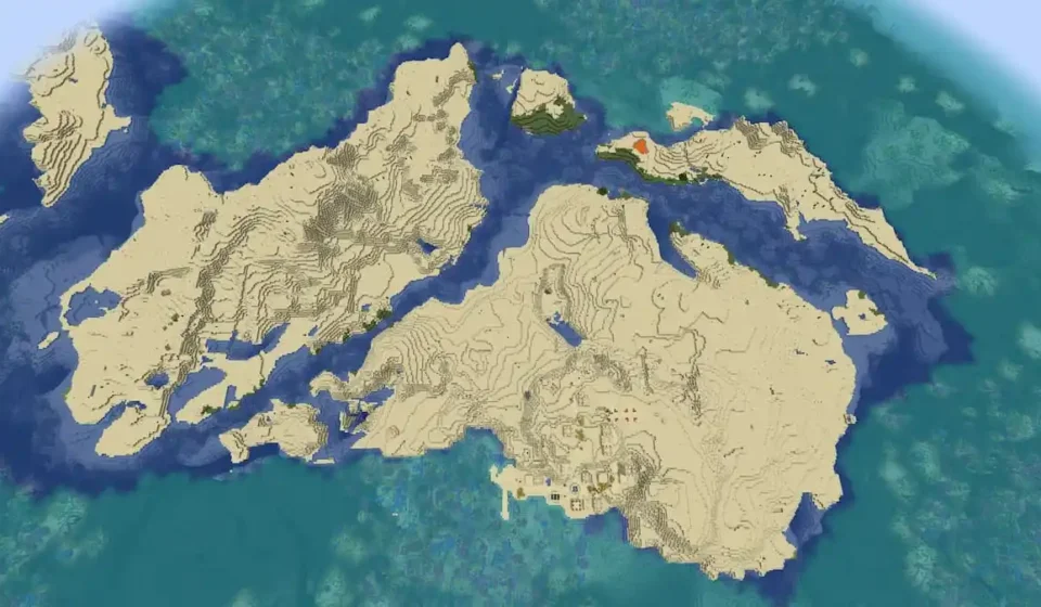 Bedrock Edition Advantage: Players on the Bedrock edition will find this seed particularly rewarding due to the presence of two Desert Villages and a Desert Temple situated directly on the island. These structures offer immediate access to loot, trading opportunities, and essential building materials, significantly accelerating early-game progression.